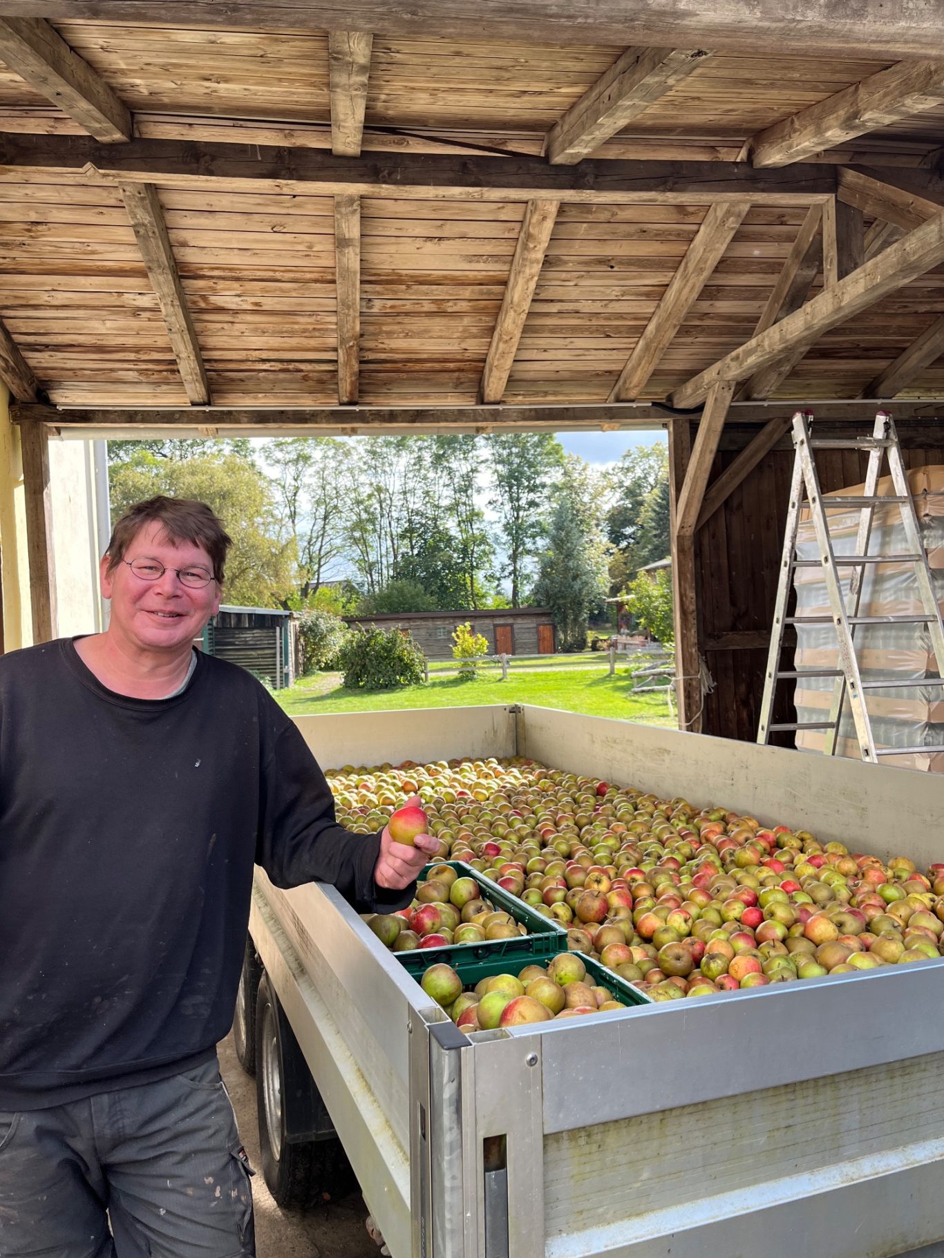 Björn hat viele Jahre Mostereierfahrung. Zuvor hat er in der Mosterei "Rothener Mühle" gearbeitet und ist mit der Mosterei nach Loiz gekommen. Die leckeren Kuchen bringt er ebenso mit.